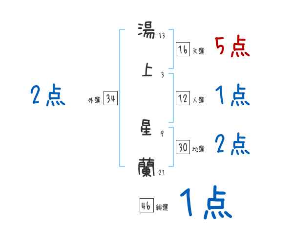 湯上星蘭さんの画数の鑑定結果