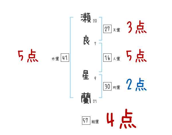 瀬良星蘭さんの画数の鑑定結果