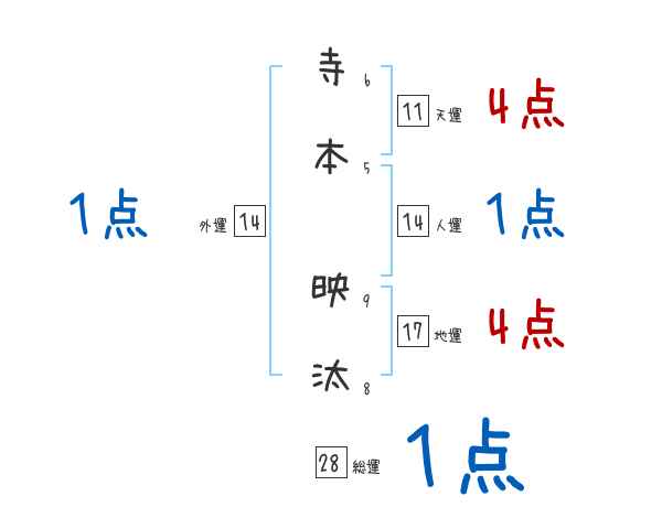 寺本映汰さんの画数の鑑定結果