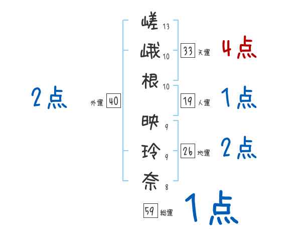 嵯峨根映玲奈さんの画数の鑑定結果