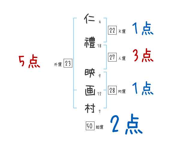 外運![]() | 仁禮映画村さんの外運は23画の5つ星!想像力に優れ活力がある。一代で成功し名誉を手に入れる。 生活面を象徴する運勢です。外部から受ける影響力を表し、結婚運、家庭運や職場、環境への順応性を表します。 |