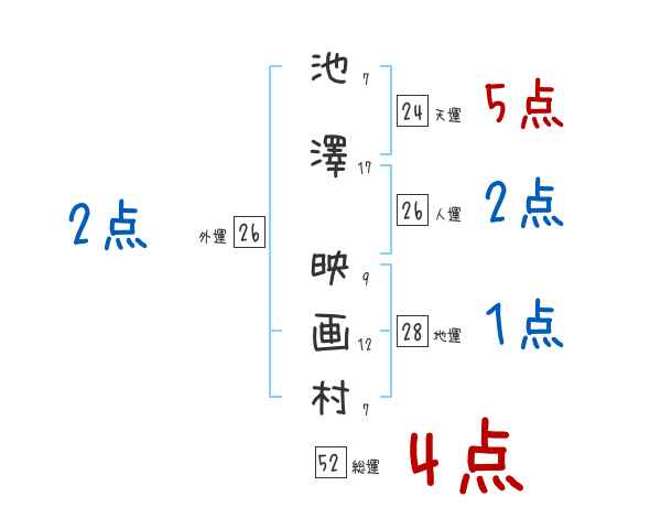 天運![]() | 池澤映画村さんの天運は24画の5つ星!家庭運が良く順調な人生。金運にも恵まれる。 家系が持つ宿命的な運勢を表します。祖先から受け継いだ苗字ですので自分の力が及びません。家柄を象徴します。 |