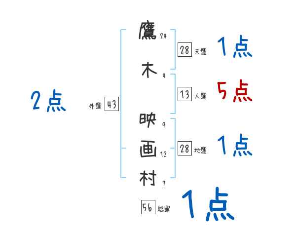 天運![]() | 鷹木映画村さんの天運は28画の1つ星!家庭環境に注意。スポーツで活躍できる能力があるかも。 家系が持つ宿命的な運勢を表します。祖先から受け継いだ苗字ですので自分の力が及びません。家柄を象徴します。 |
