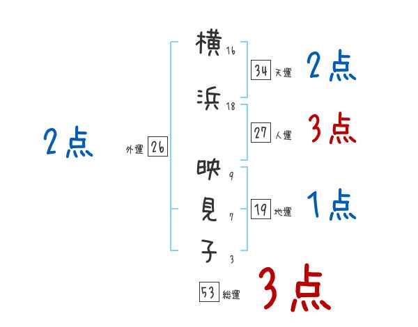 横浜映見子さんの画数の鑑定結果