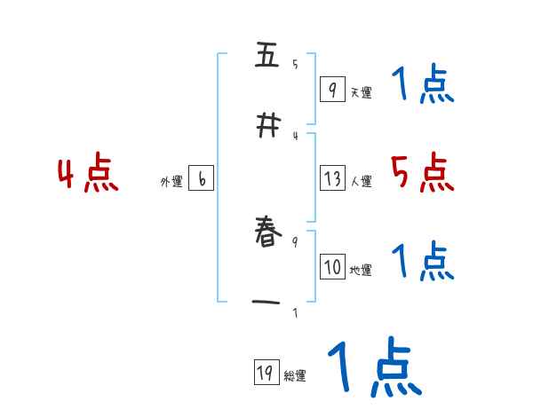 五井春一さんの画数の鑑定結果