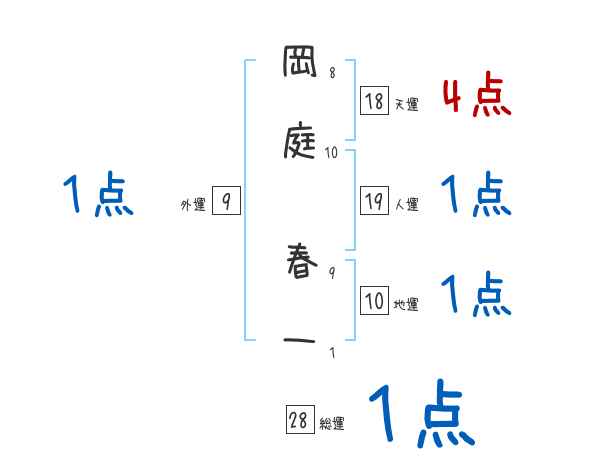 岡庭春一さんの画数の鑑定結果