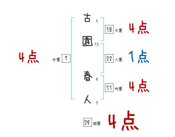 古園春人さんの画数の鑑定結果