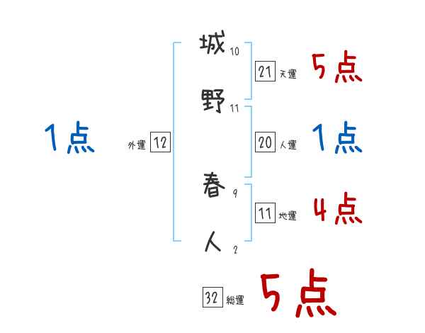 城野春人さんの画数の鑑定結果
