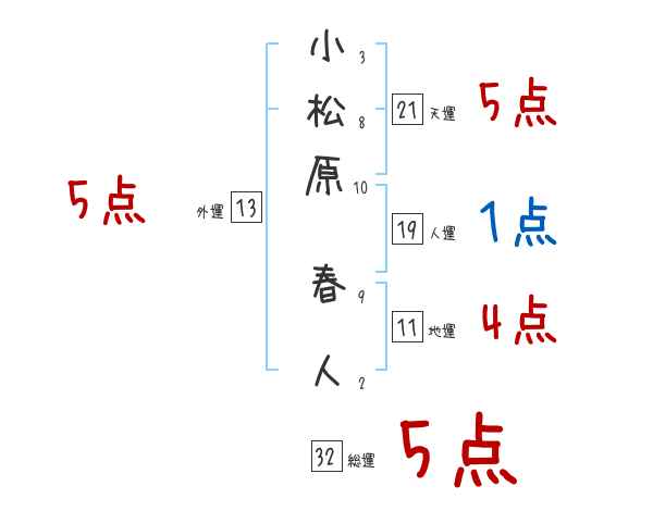 小松原春人さんの画数の鑑定結果
