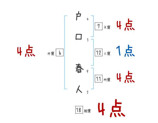 戸口春人さんの画数の鑑定結果