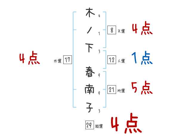 木ノ下春南子さんの画数の鑑定結果