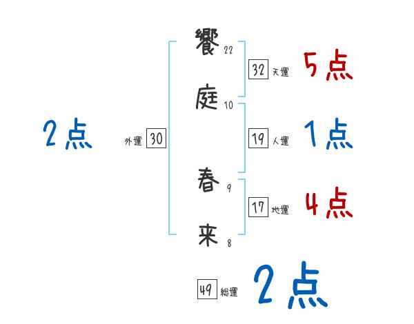 饗庭春来さんの画数の鑑定結果