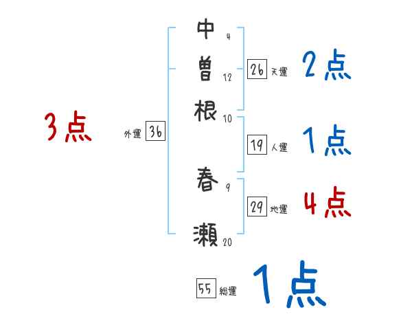中曽根春瀬さんの画数の鑑定結果