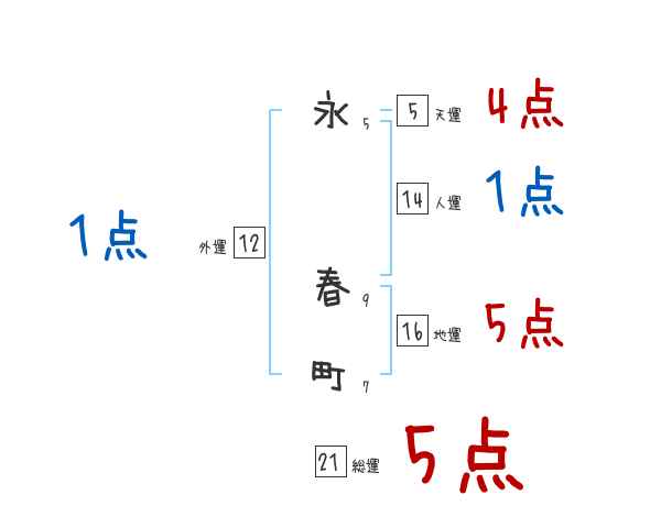 永春町さんの画数の鑑定結果
