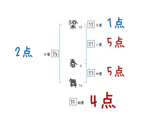 梁春舞さんの画数の鑑定結果