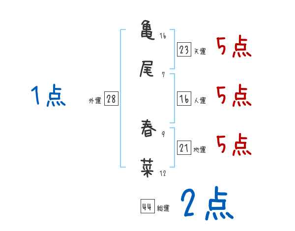亀尾春菜さんの画数の鑑定結果