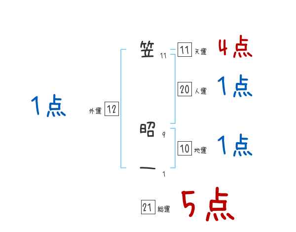 笠昭一さんの画数の鑑定結果