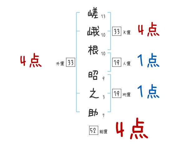 嵯峨根昭之助さんの画数の鑑定結果