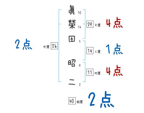 眞榮田昭二さんの画数の鑑定結果