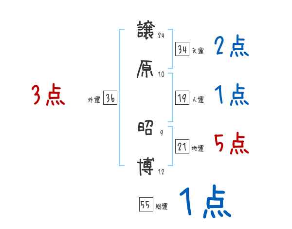 譲原昭博さんの画数の鑑定結果