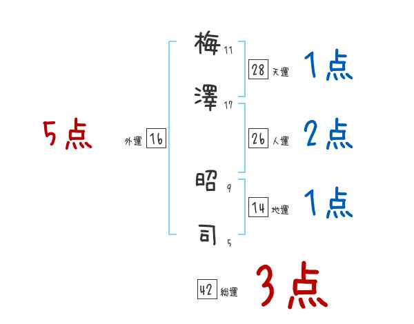 梅澤昭司さんの画数の鑑定結果