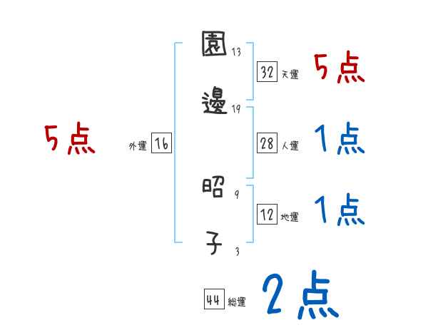 園邊昭子さんの画数の鑑定結果