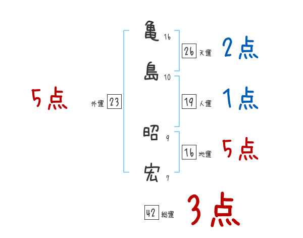 亀島昭宏さんの画数の鑑定結果