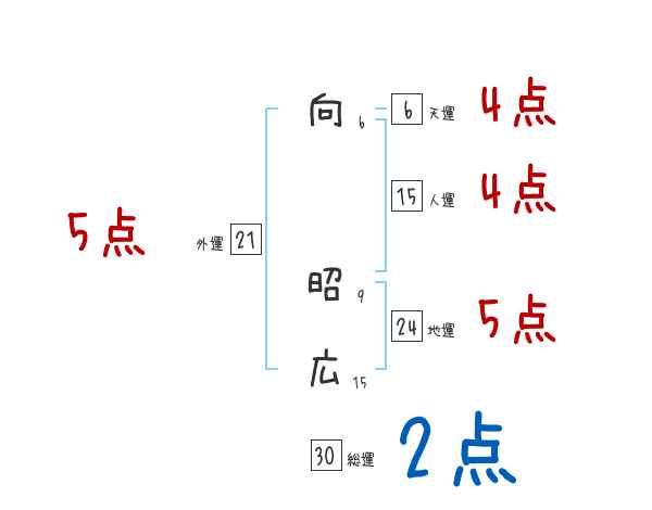 向昭広さんの画数の鑑定結果