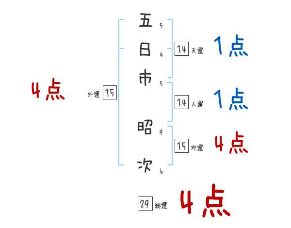 五日市昭次さんの画数の鑑定結果