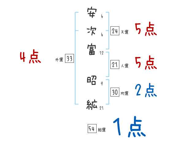 安次富昭絋さんの画数の鑑定結果
