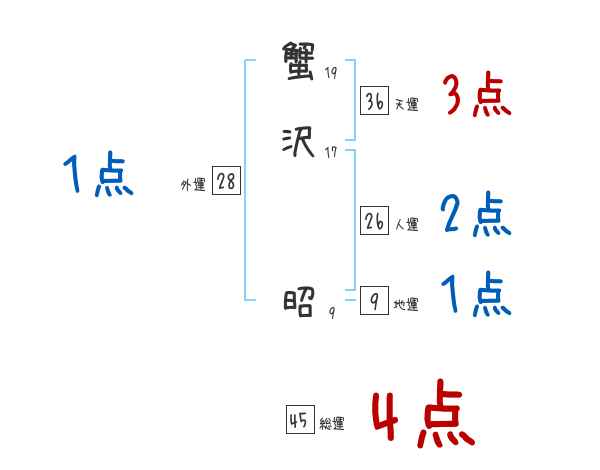 蟹沢昭さんの画数の鑑定結果