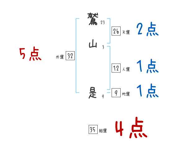 外運![]() | 鷲山是さんの外運は32画の5つ星!柔軟性があり成功する。チャンスが多く金運が良い。 生活面を象徴する運勢です。外部から受ける影響力を表し、結婚運、家庭運や職場、環境への順応性を表します。 |