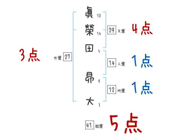 眞榮田昴大さんの画数の鑑定結果