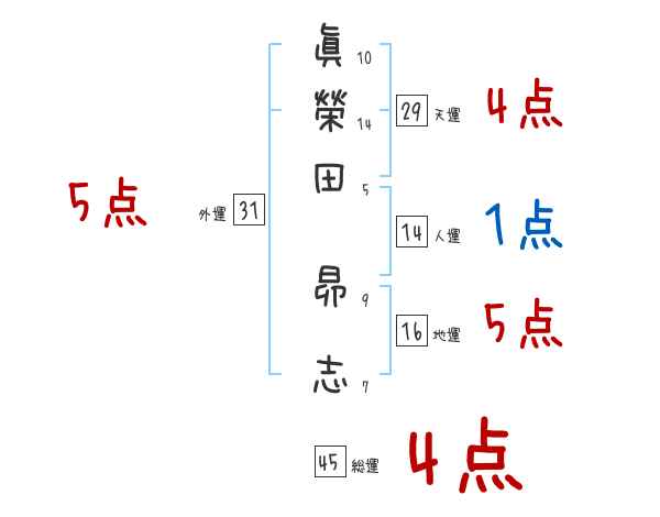 眞榮田昴志さんの画数の鑑定結果