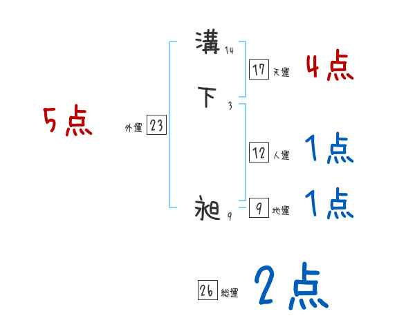 外運![]() | 溝下昶さんの外運は23画の5つ星!想像力に優れ活力がある。一代で成功し名誉を手に入れる。 生活面を象徴する運勢です。外部から受ける影響力を表し、結婚運、家庭運や職場、環境への順応性を表します。 |