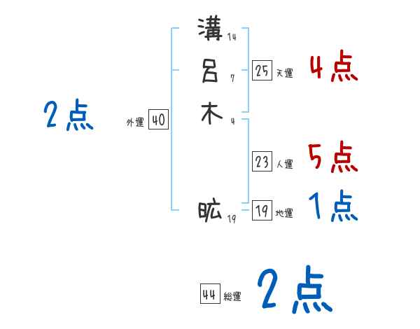 総運![]() | 溝呂木昿さんの総運は44画の2つ星!誠実で慎重な性格。物事を考えすぎないように注意しましょう。 あなたの人生を表す1番重要な運勢です。生涯を通じて影響する総合運となり、主に50歳以降の晩年期に影響を及ぼします。 |
