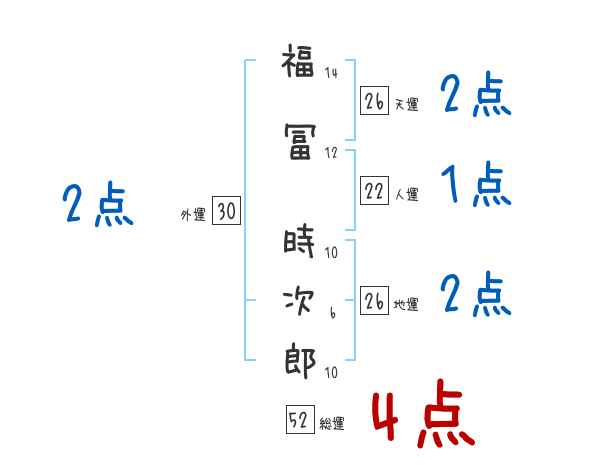 外運![]() | 福冨時次郎さんの外運は30画の2つ星!浮き沈みの激しさに注意しましょう。 生活面を象徴する運勢です。外部から受ける影響力を表し、結婚運、家庭運や職場、環境への順応性を表します。 |