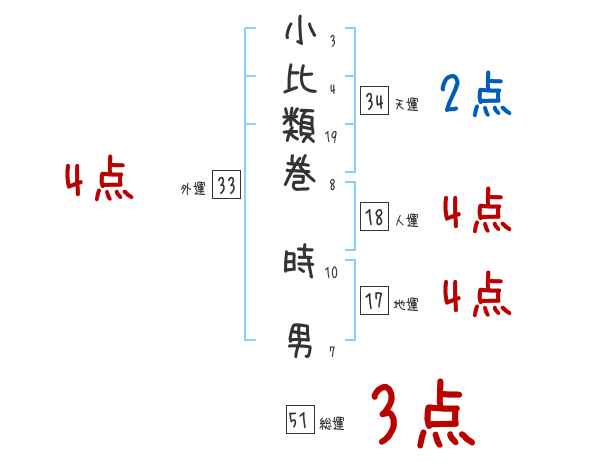 小比類巻時男さんの画数の鑑定結果
