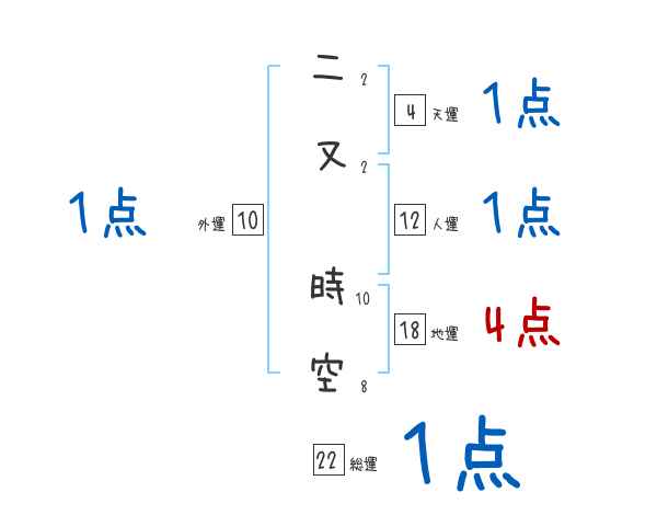 二又時空さんの画数の鑑定結果