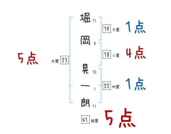 堀岡晃一朗さんの画数の鑑定結果