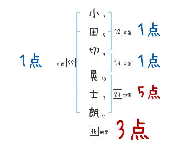 総運![]() | 小田切晃士朗さんの総運は36画の3つ星!先見性が豊かです。多少神経質で苦労することも。 あなたの人生を表す1番重要な運勢です。生涯を通じて影響する総合運となり、主に50歳以降の晩年期に影響を及ぼします。 |