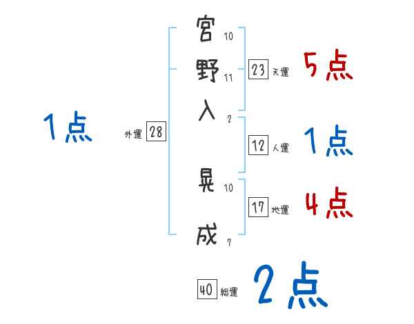 宮野入晃成さんの画数の鑑定結果