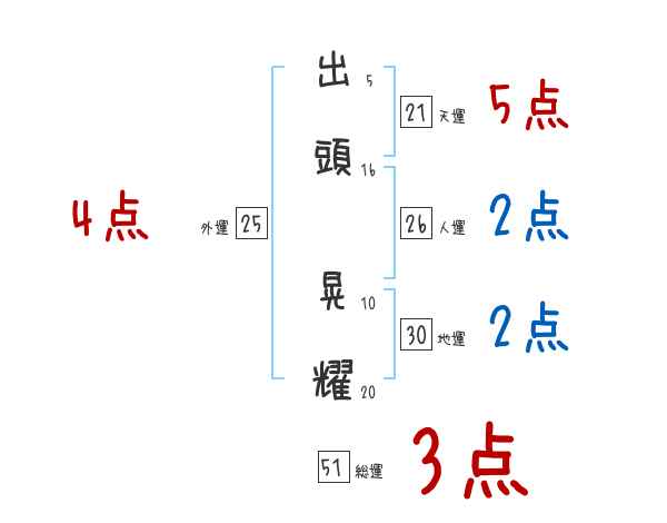 出頭晃耀さんの画数の鑑定結果