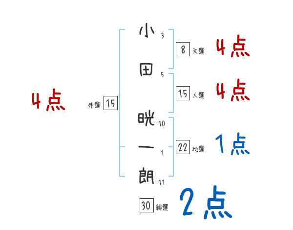 小田晄一朗さんの画数の鑑定結果