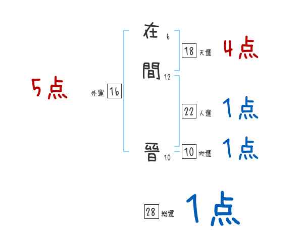 人運![]() | 在間晉さんの人運は22画の1つ星!努力することが苦手ないっぽう手先が器用。芸術性にも優れる。 性格や才能などを表す2番目に重要な運勢です。人間関係や協調性、社会的な成功に影響します。主に20歳から50歳ぐらいまでの中年期の運勢を表します。 |