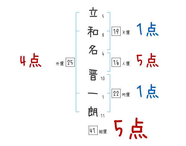 人運![]() | 立和名晋一朗さんの人運は16画の5つ星!人望が厚く大きく発展する。逆転成功が見える。 性格や才能などを表す2番目に重要な運勢です。人間関係や協調性、社会的な成功に影響します。主に20歳から50歳ぐらいまでの中年期の運勢を表します。 |