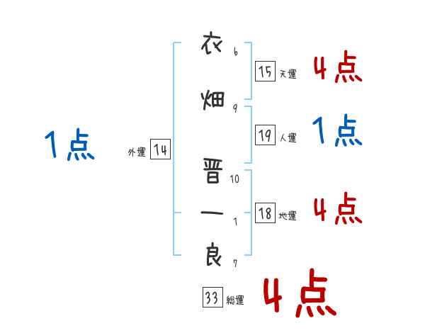 衣畑晋一良さんの画数の鑑定結果