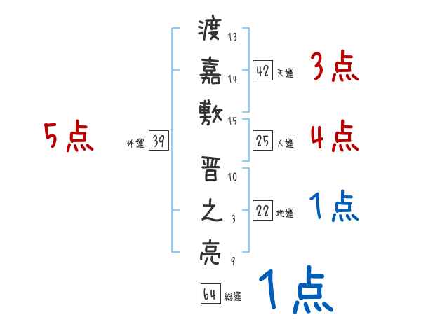渡嘉敷晋之亮さんの画数の鑑定結果