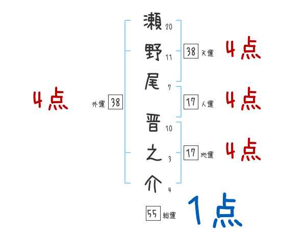 瀬野尾晋之介さんの画数の鑑定結果