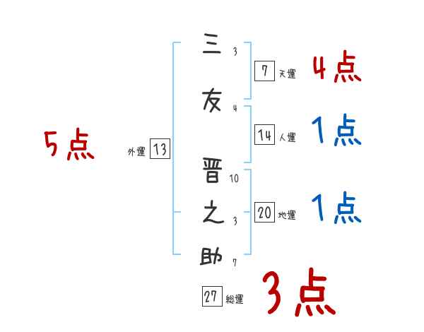 天運![]() | 三友晋之助さんの天運は7画の4つ星!強い意志や信念を持ち独立心が強い。自立する。 家系が持つ宿命的な運勢を表します。祖先から受け継いだ苗字ですので自分の力が及びません。家柄を象徴します。 |